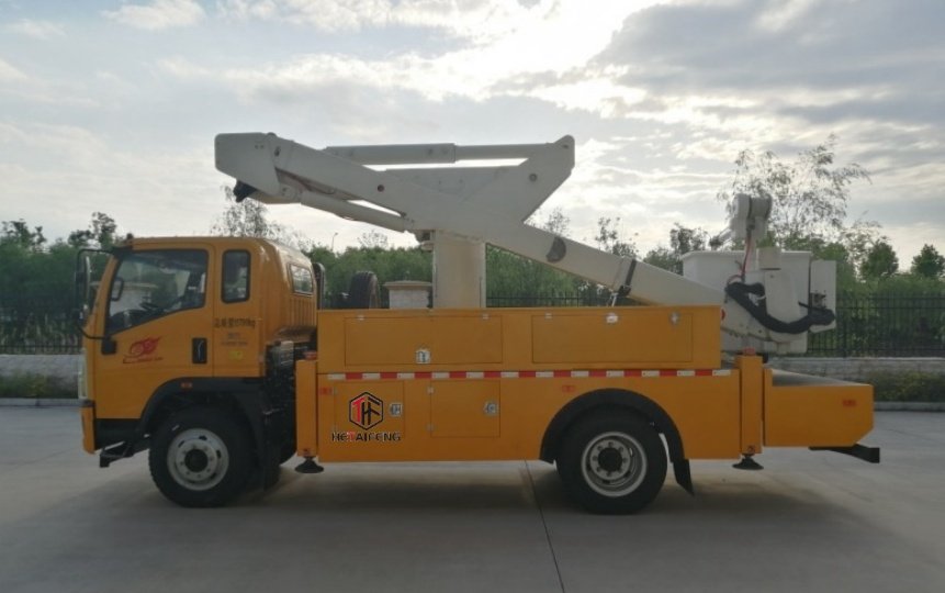 The mechanical leveling method is to set one or more parallelogram linkage mechanisms, chains, steel wires, etc. between the turntable and the hanging basket, and use the principle that the opposite sides are always parallel during the deformation of the parallelogram to achieve the balance of the hanging basket. Generally, the folding arm boom structure adopts the mechanical leveling method. Mechanical leveling has the advantages of simple structure and high reliability, but the disadvantage is that it is large in size and occupies space.