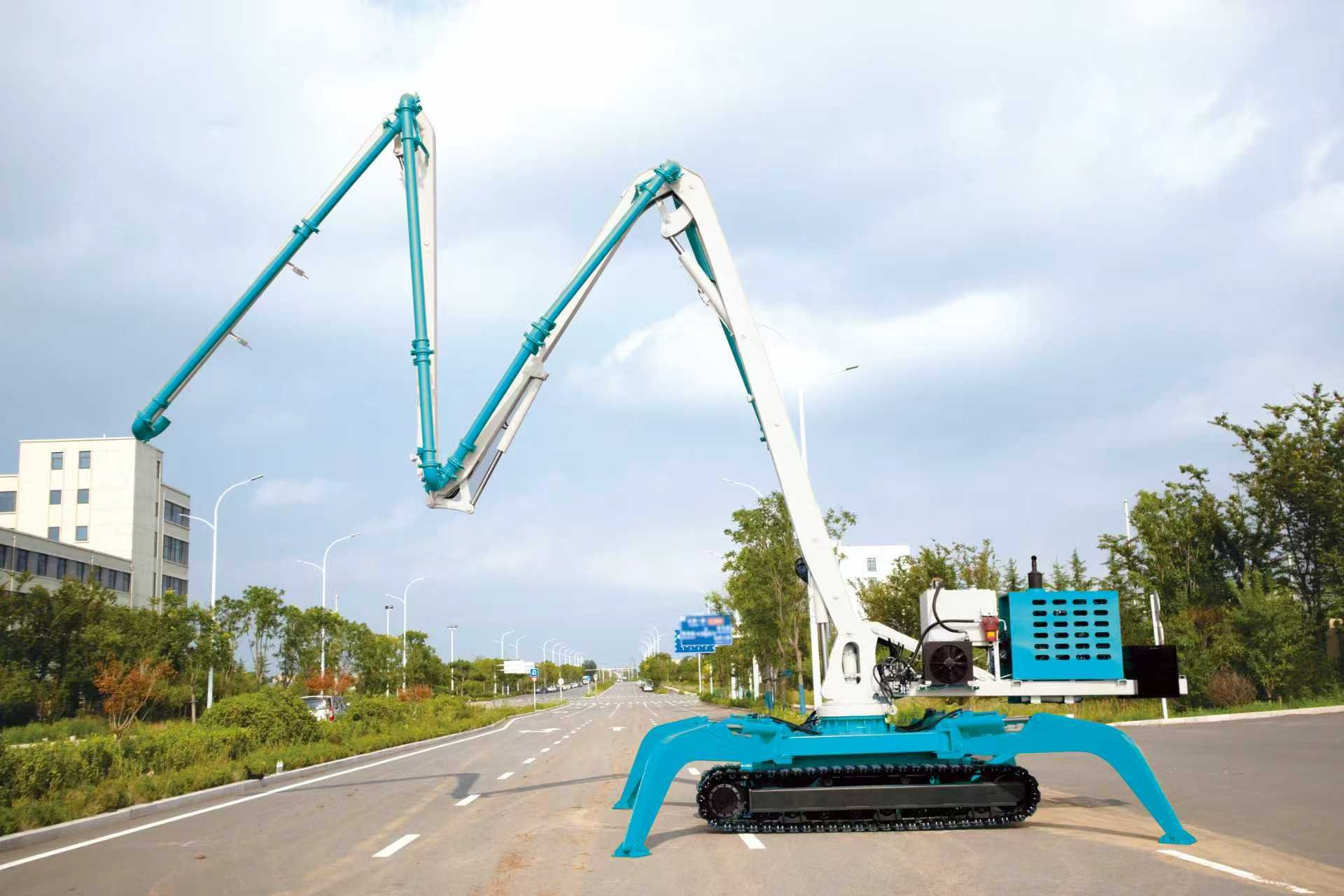 The Crawler hydraulic concrete placing boom is a new product designed to expand the scope of concrete pouring and improve the mechanization level of pumping construction. As a supporting equipment for concrete pumps, it increases the range of concrete pumping by connecting with concrete pumps; at the same time, it plays an important role in improving construction efficiency and reducing labor intensity by effectively solving the problem of material distribution in wall pouring. This concrete placing boom is reasonably designed, with stable and reliable structure, simple and flexible operation of the whole machine, all-round and arm-type distribution structure, high efficiency and energy saving characteristics, and economical and practical features.